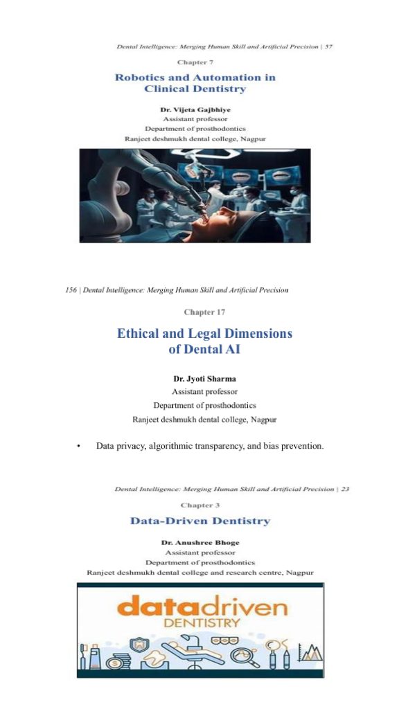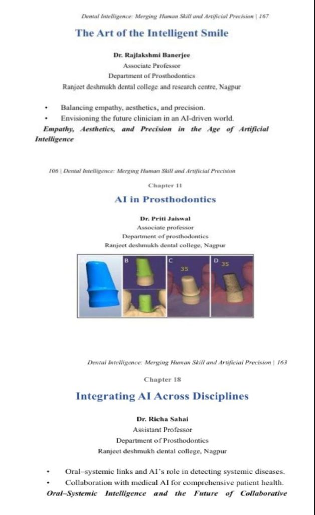 Faculties from Department of Prosthodontics, Ranjeet Deshmukh Dental College & Research Centre, Nagpur contributed Chapters in a Textbook titled: “Dental Intelligence: Merging Human Skill and Artificial Precision” published by Taneesha Publisher on 2nd February 2026.